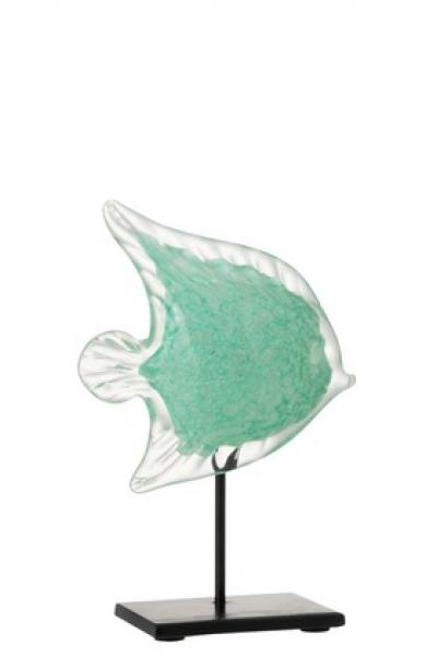 Fisch auf Fuß, Glas-Metall, azur-schwarz, 21 cm